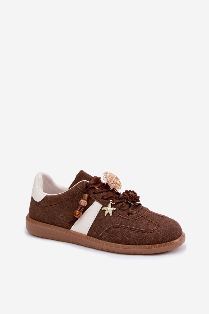 Moteriški sportbačiai su dekoracijomis šokolado spalvos Lelora