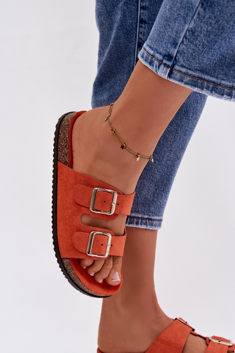 Women's Orange Slides With Buckles Oliena