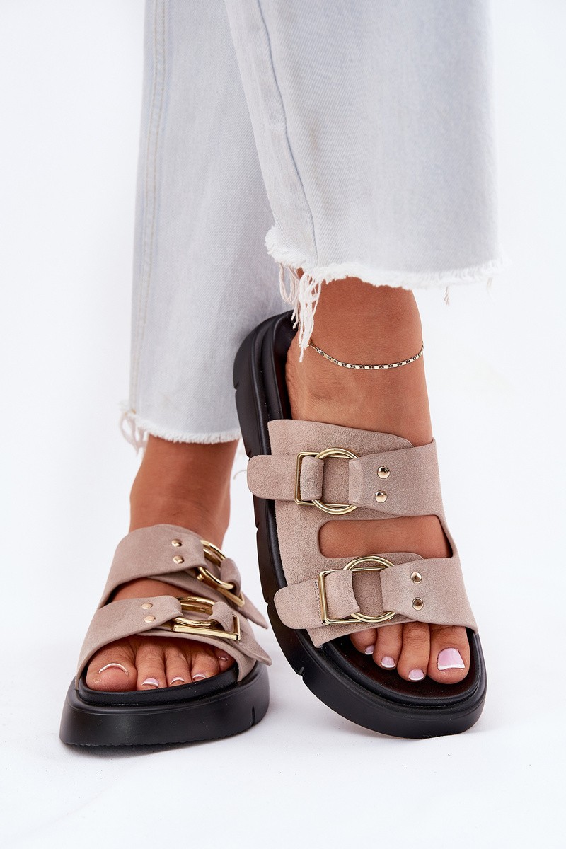 Women's Suede Slippers With Decorative Buckles Big Star RR274659 Light Pink