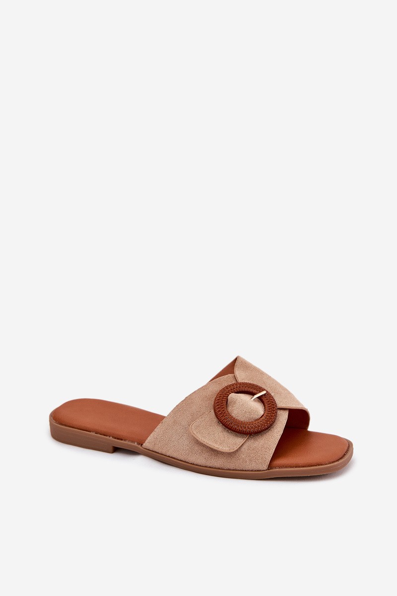 Moteriškos basutės plokščiapadžiai su sagtimi, smėlio spalvos, Lanoni