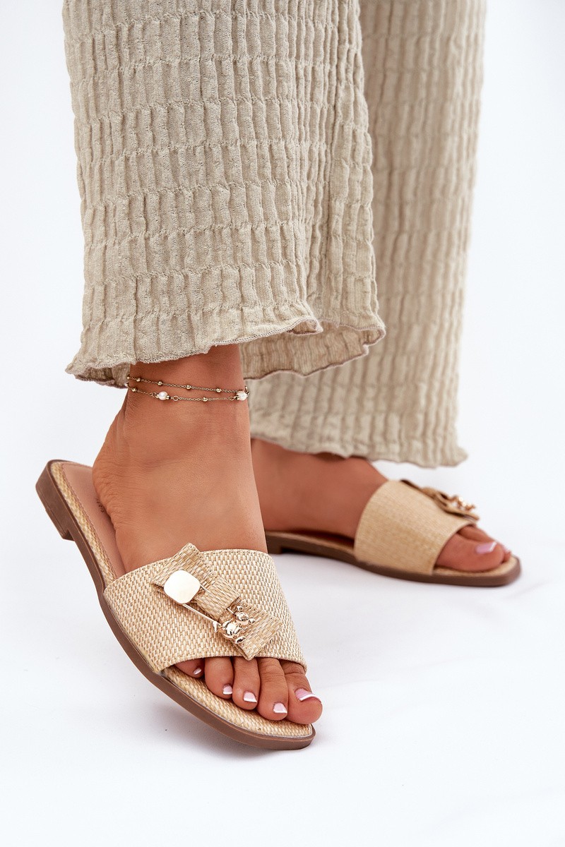 Moteriškos šlepetės plokščiapadžiais kulnais ir kaspinu baltos spalvos „Sallariela“