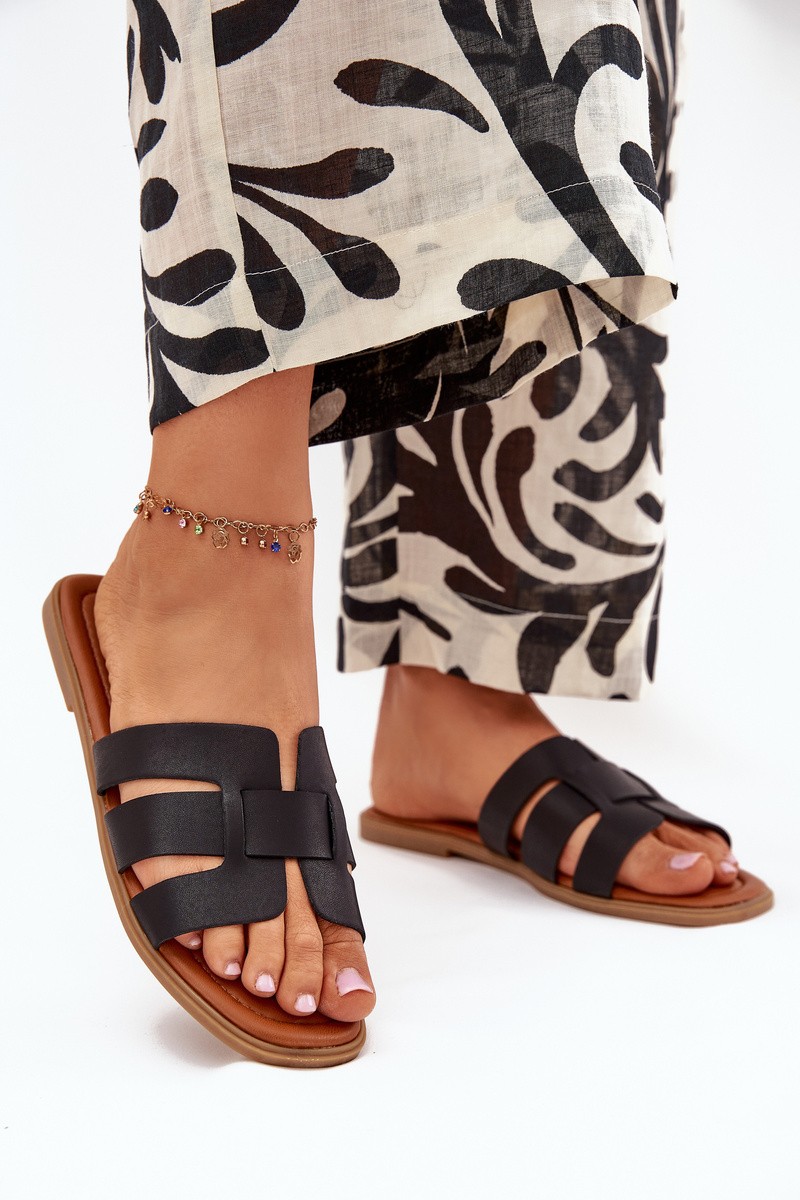 Moteriškos basutės plokščiapadžiais kulnais juodos Mirona