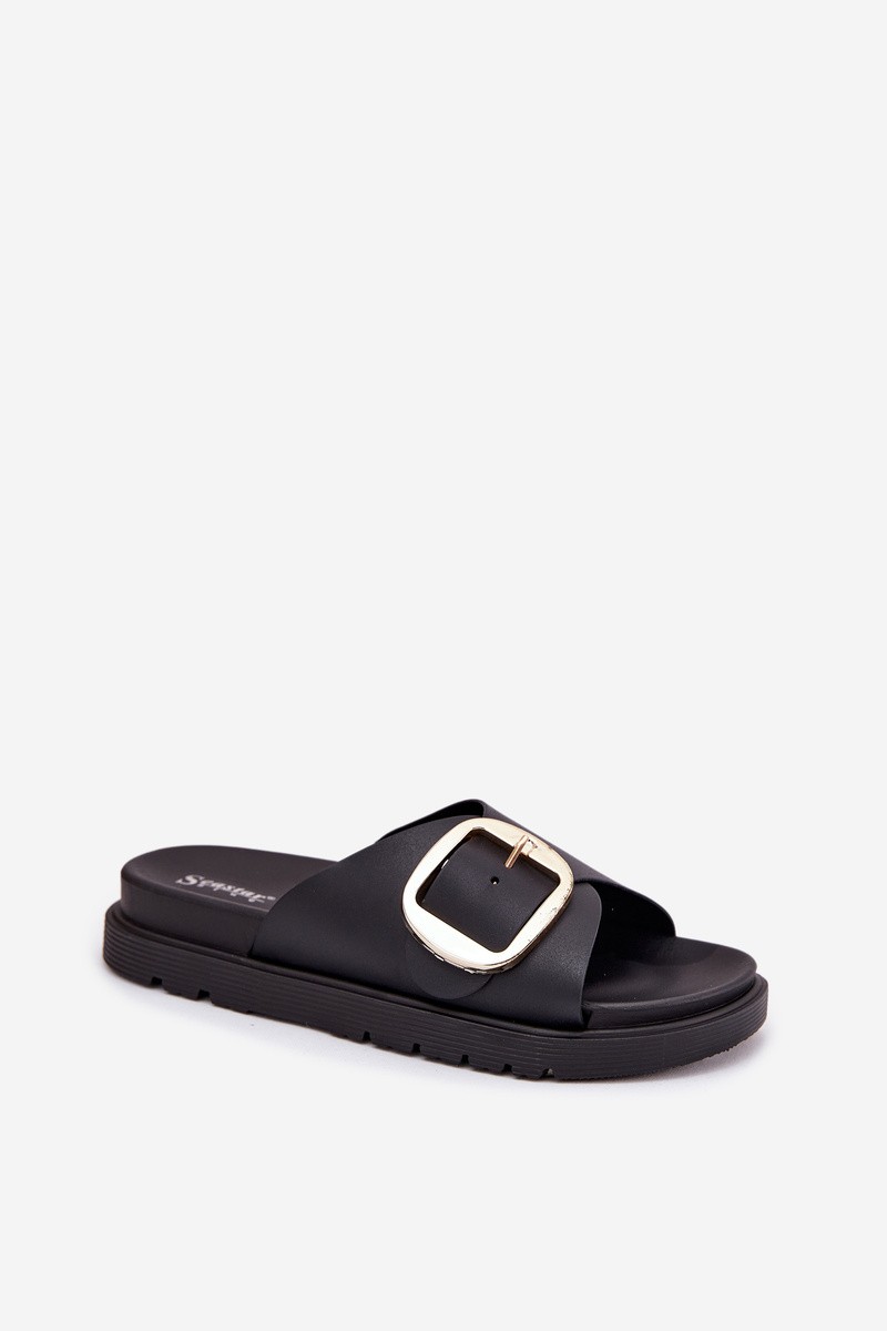 Moteriškos platforminės basutės su auksine sagtimi, juodos Jovira