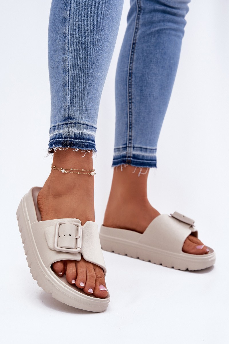 Moteriškos platforminės basutės su putplasčio medžiaga ir sagtimi, rožinės Viasara