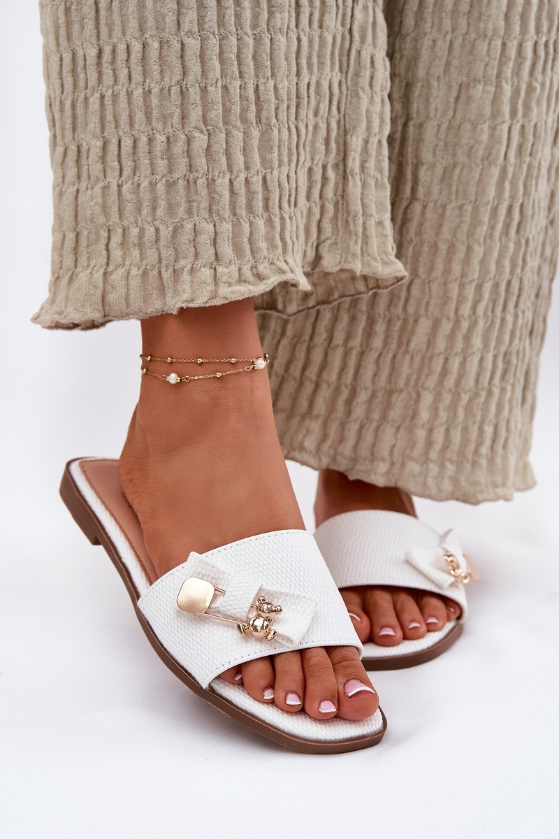 Moteriškos šlepetės plokščiapadžiais kulnais ir kaspinu baltos spalvos „Sallariela“