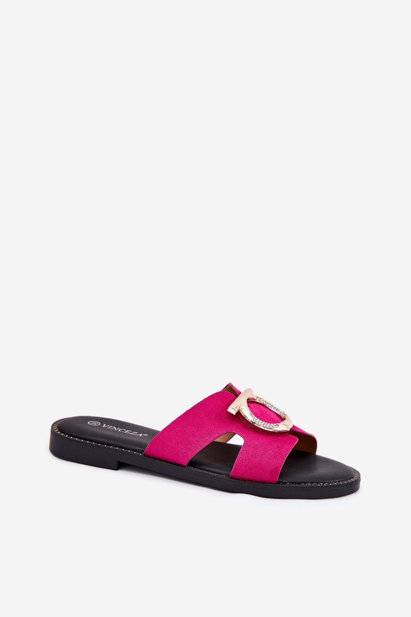 Moteriškos šlepetės plokščiu kulnu su dekoracijomis Vinceza 17381 fuksijos spalvos